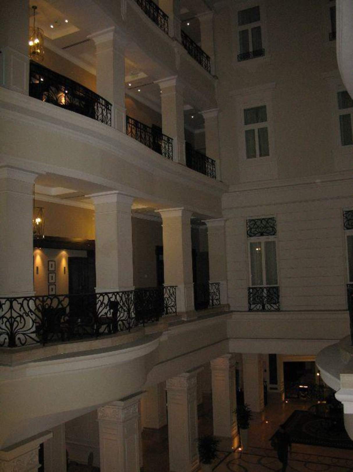 Blick auf den Innenhof bei Nacht