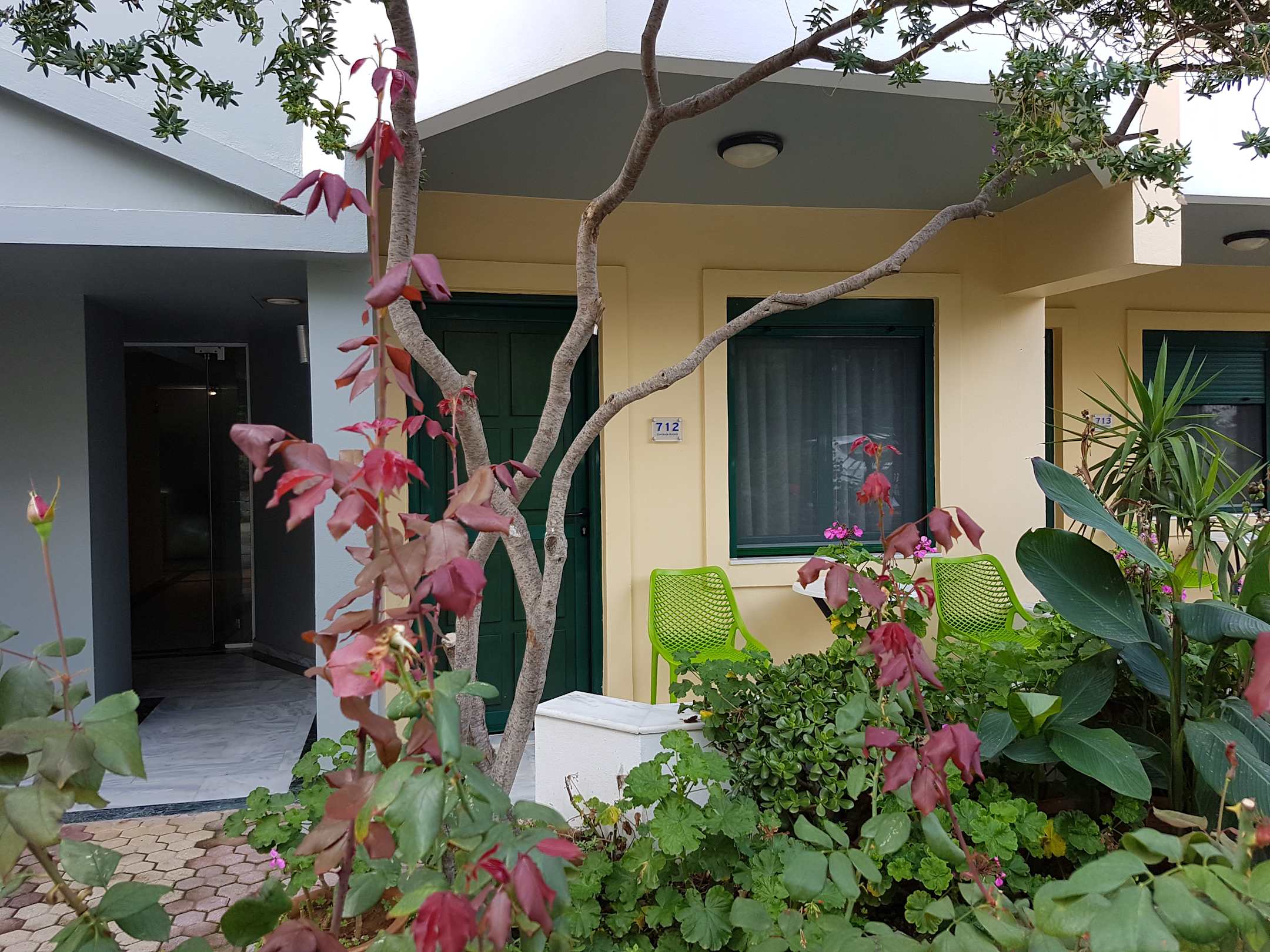 Außenansicht des Hotelzimmers 712 ein wenig entfernt vom Haupthaus