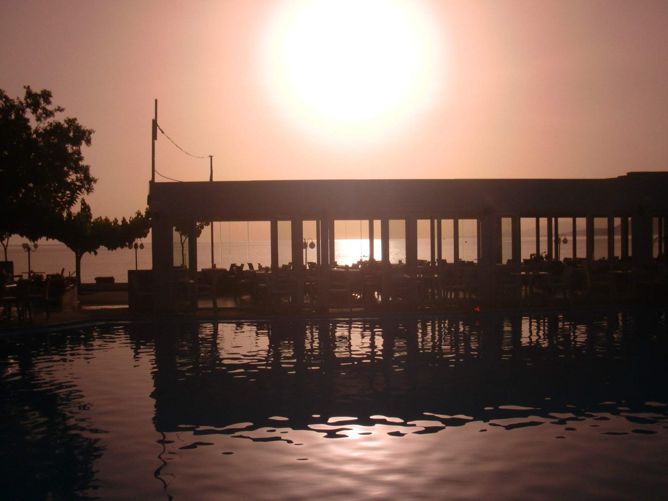 Sonnenaufgang: Meer, Pool, Restaurant