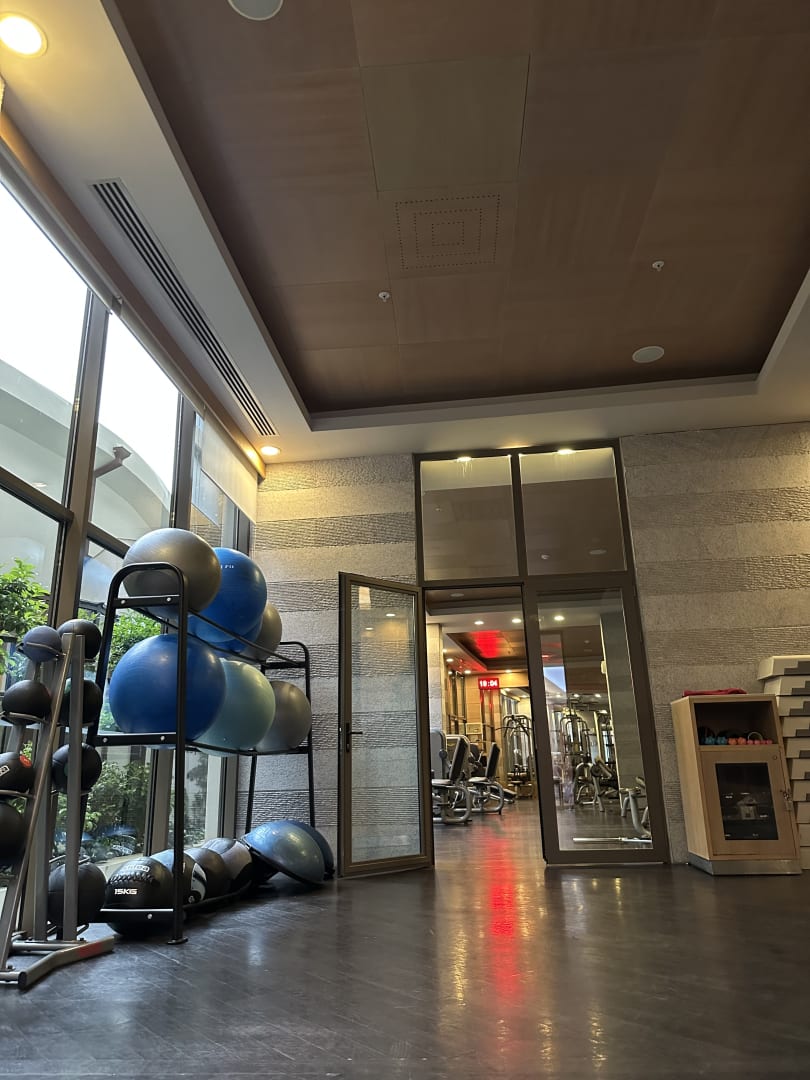 There is a gym, 6 tennis courts, bowling alley, table tennis, arcade games, as well as golf course and driving range that can be reached by shuttle.
