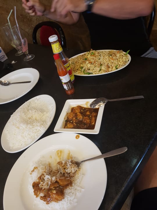 Wie gehabt, Chicken Noodles L und Chicken Manchurian, jetzt mal mit Reis