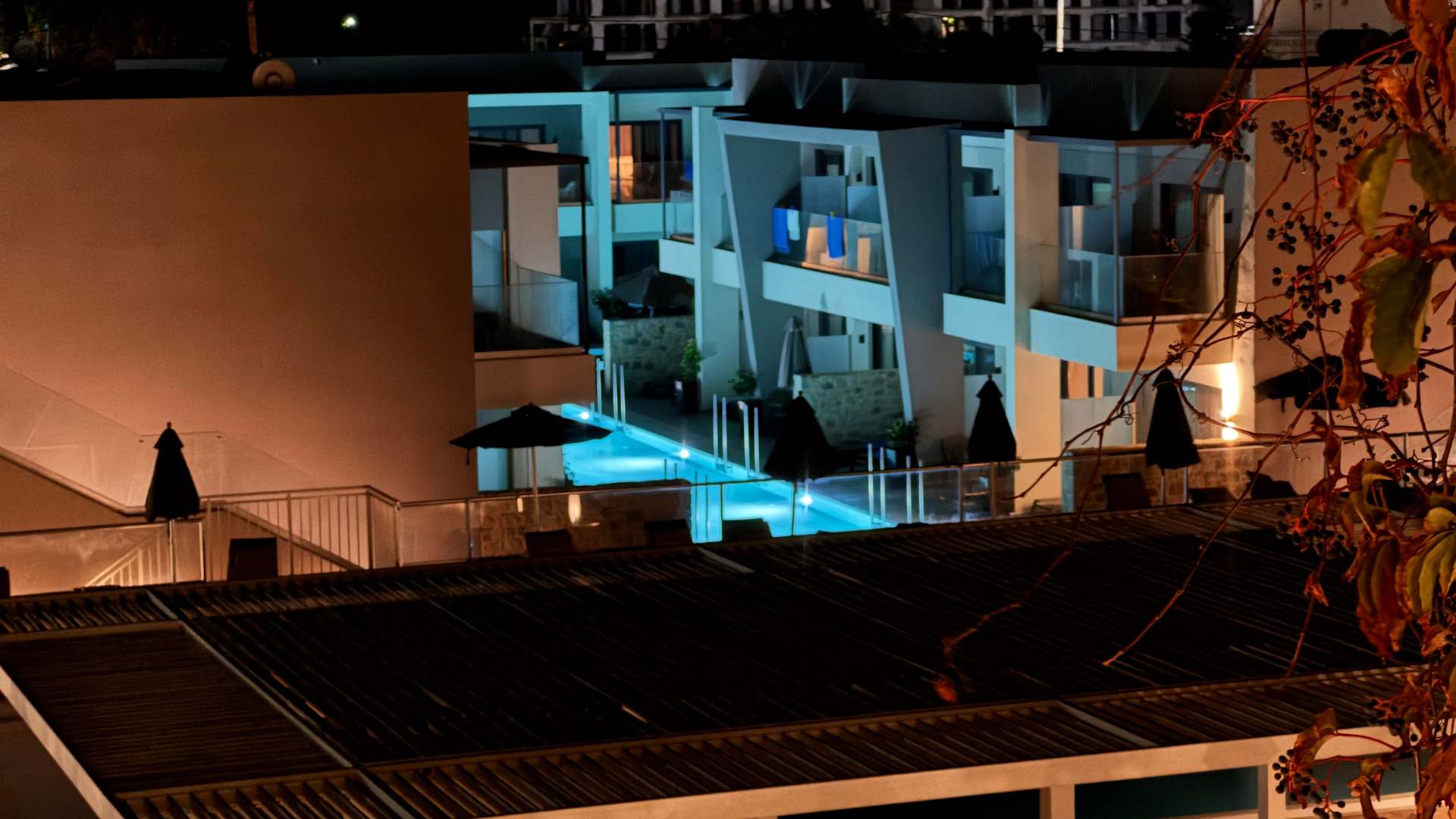 Blick zu den swim up Rooms abends
