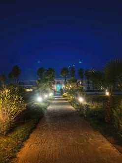 Hinter mir Beachbar und Strand. Weg zum Hotel