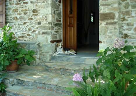 Hotelhund Irma vor dem Eingang