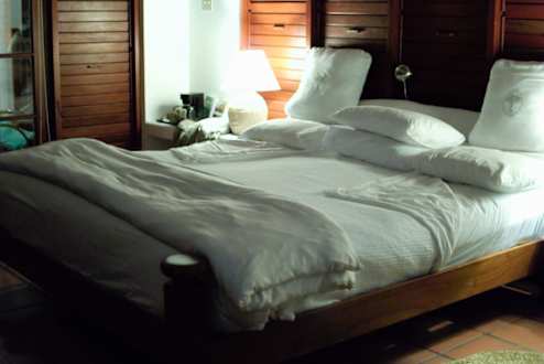 Beach Front Superior ZimmerHotelzimmer, wie es vom Personal für die Nachtruhe vorbereitet wurde.