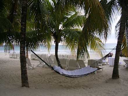 Relaxen am StrandEine der vielen gemütlichen Hängematten am Strand. Abends mit einer Flasche Champagner - ein karibischer Traum