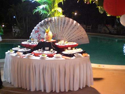 Sushi am intern. Büffet im Hauptrestaurant.