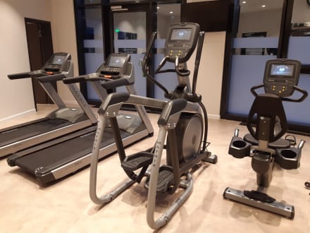 Fitnessraum mit Cardio Geräten und Hanteln