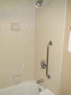 Badewanne mit integrierter Dusche.