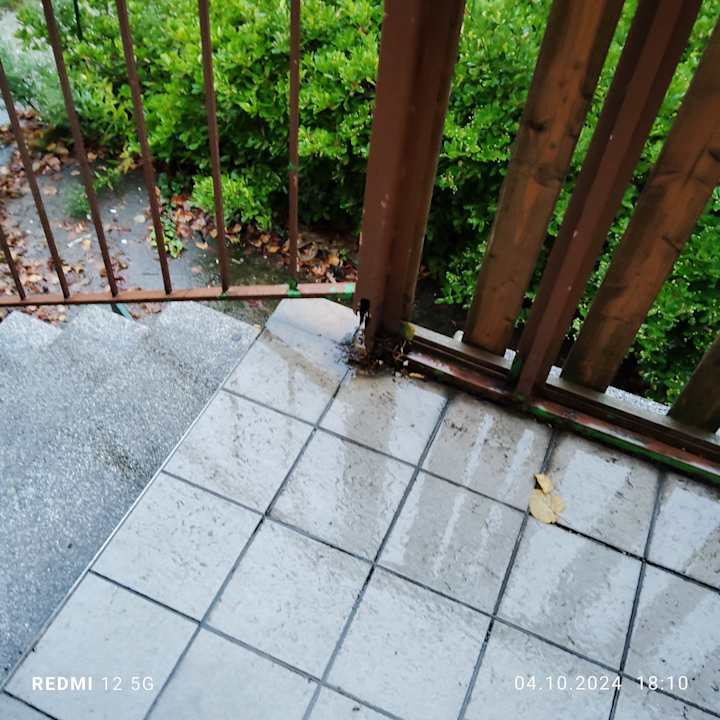 Das Geländer zum Eingang. Gut gepflegt, wenn man Rost mag und es nicht braucht.