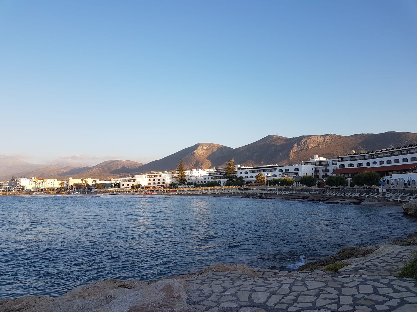 Hotel und Strand von der Bucht aus