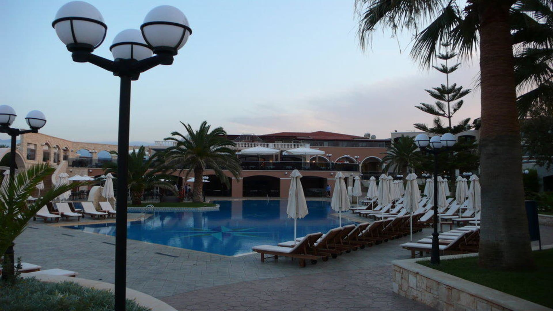 Das grosse Pool mit Poolbar im Hintergrund