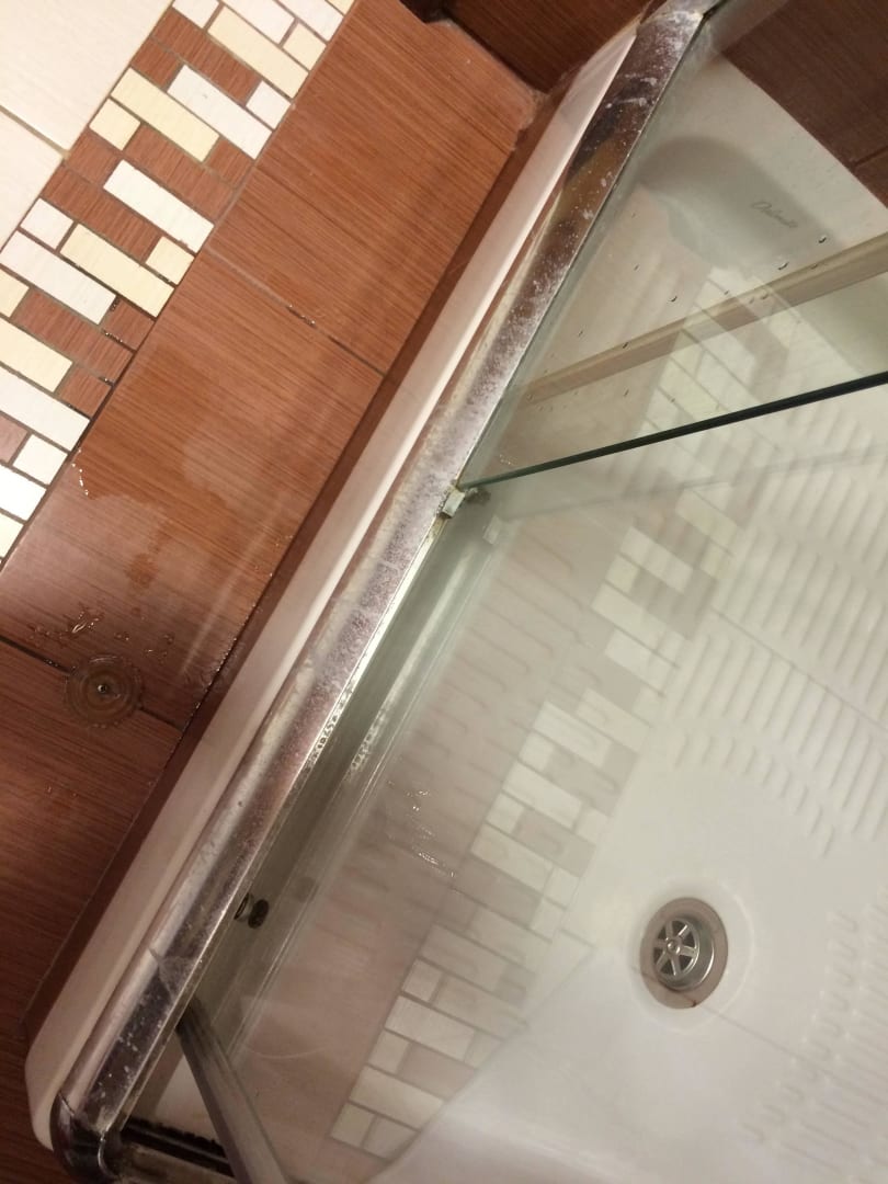 Verkalkte Dusche außen (bei Anreise bereits)