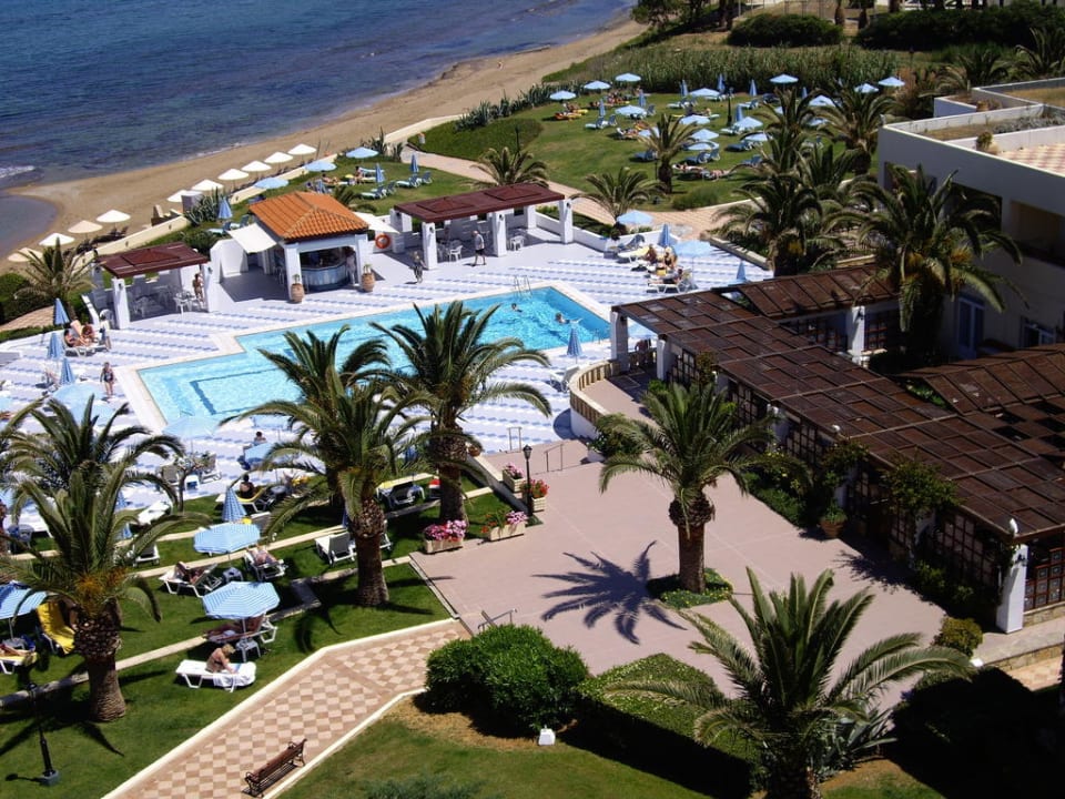 Blick auf Pool und Restaurant