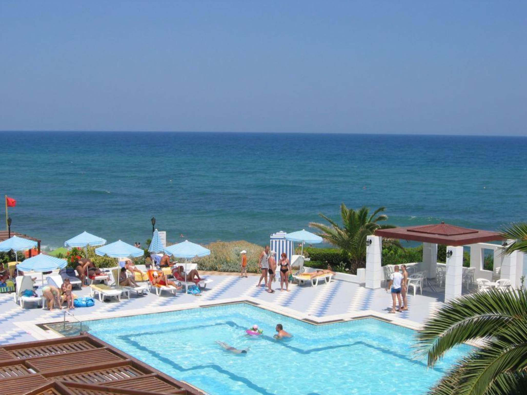 Blick über den Pool zum Meer