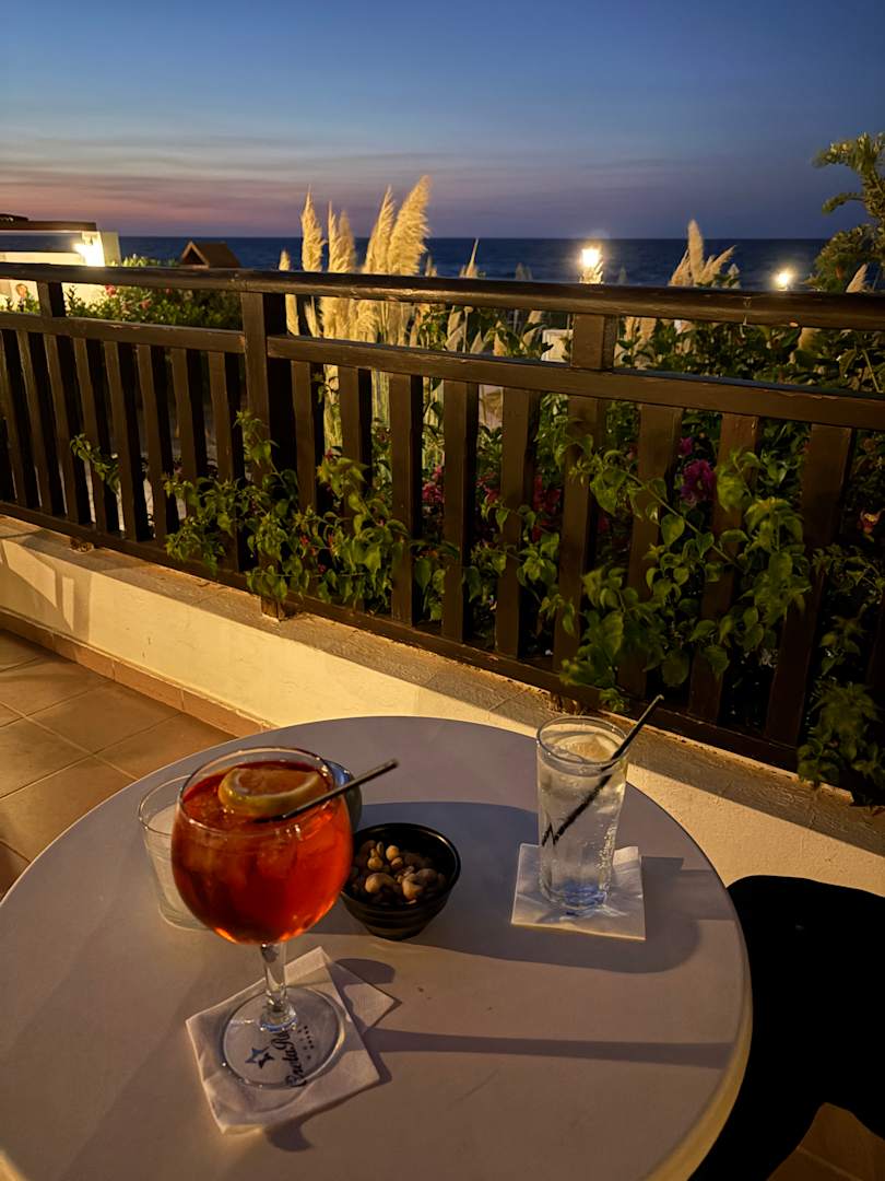 Hauptbar am Abend mit Blick auf das Meer