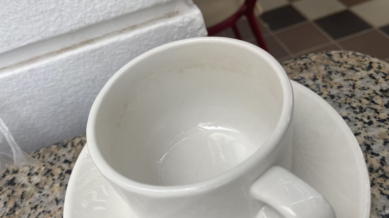 Dreckige und angelaufen Kaffee Tassen