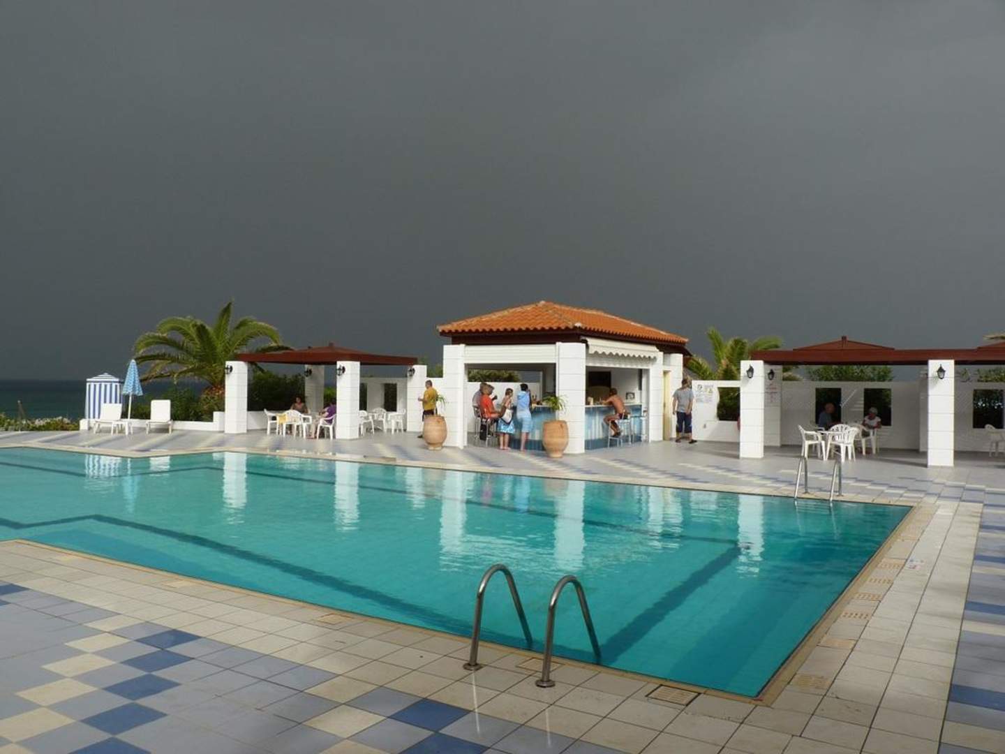 Pool mit Bar und Gewitterfront