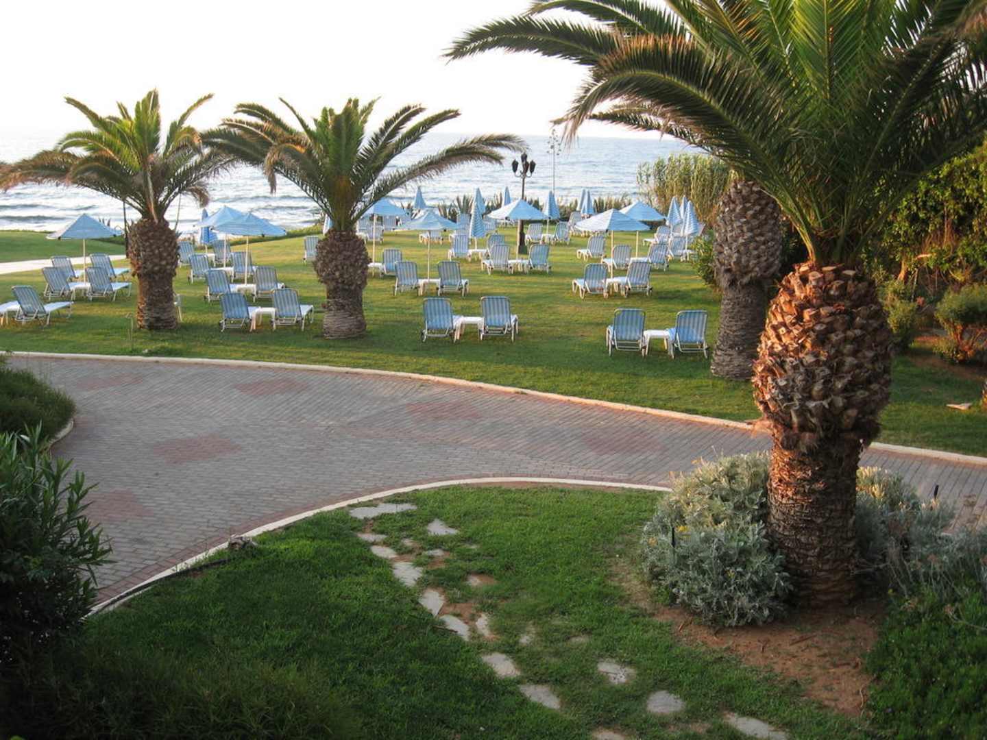 Blick von Balkon zur Liegewiese am Meer