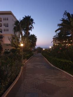 GartenanlageWeg vom Zimmer zum Strand, oder den Restaurants. Rechts vom Weg ist Creta Royal und links ist das Creta Star