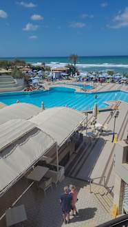 Pool sieht nur auf den Fotos gut aus. Von der Wasserkante bis zum Rand sind schon ca 40 cm. Also nicht mal eben mit den Armen auf den Pool Rand. Ich finde den Pool nicht passend zum Hotel.