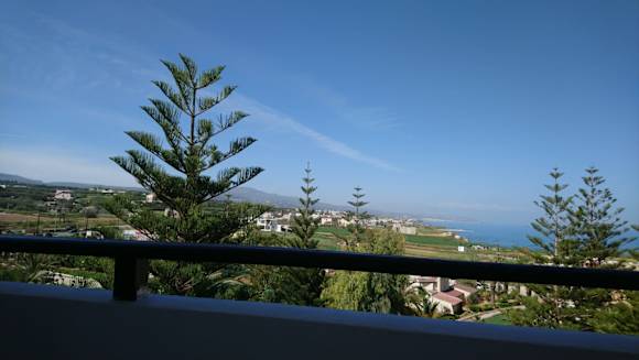 Aussicht vom Zimmer, seitlicher Meerblick, über dem Eingangsbereich des Hotels