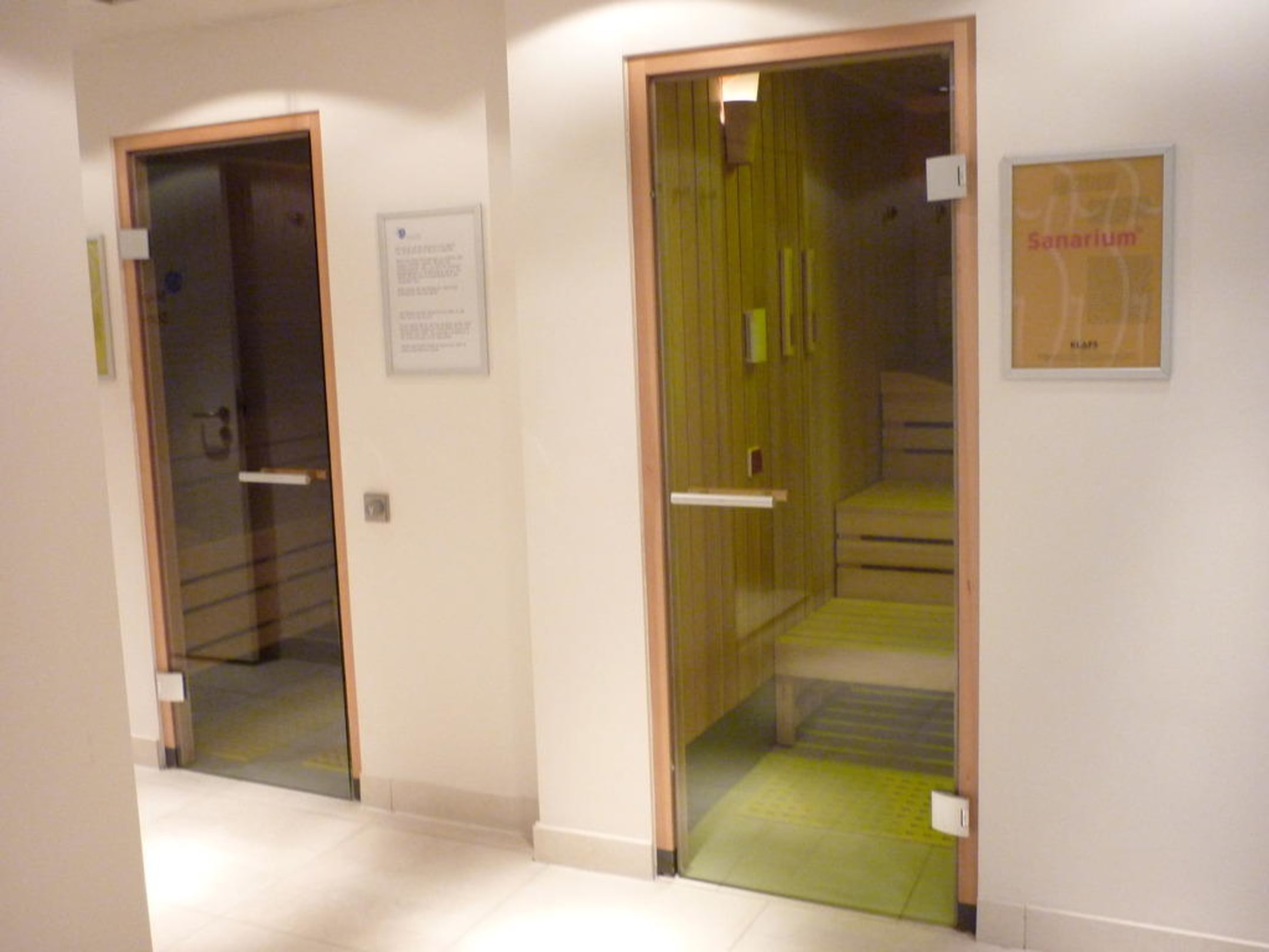 SaunabereichDie beide Saunen - links die finnische, rechts die 'Bio-Sauna'
