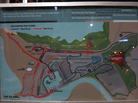 Die Yas-Busstrecken, blau und rot