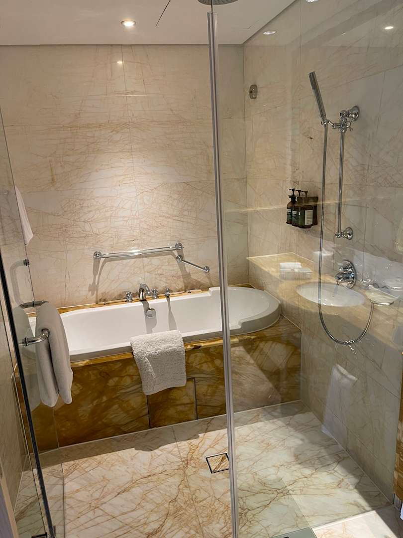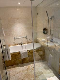 Gemütliche Badewanne mit Dusche