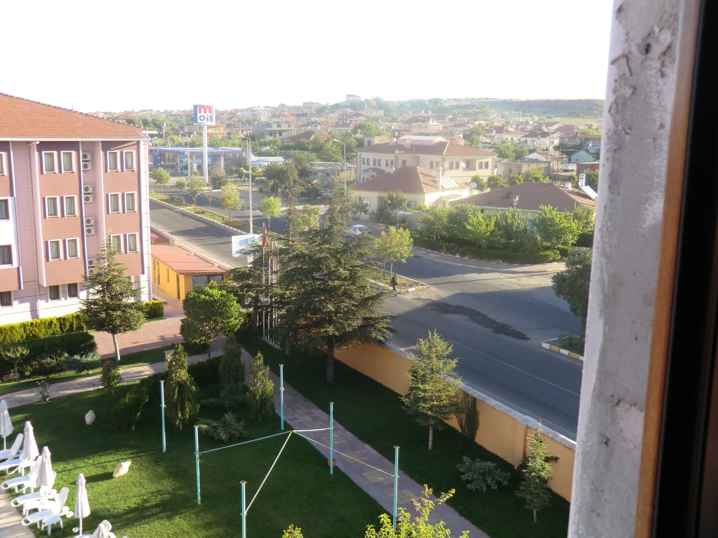 Blick vom Zimmer rechts stark befahrende Straße