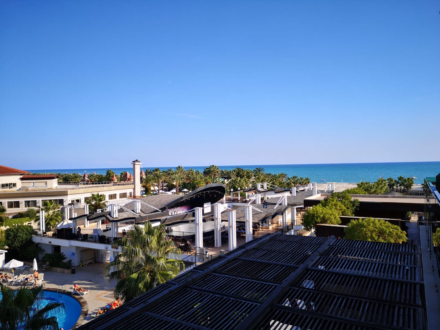 Ausblick vom DZ zum Amphitheater und Strand