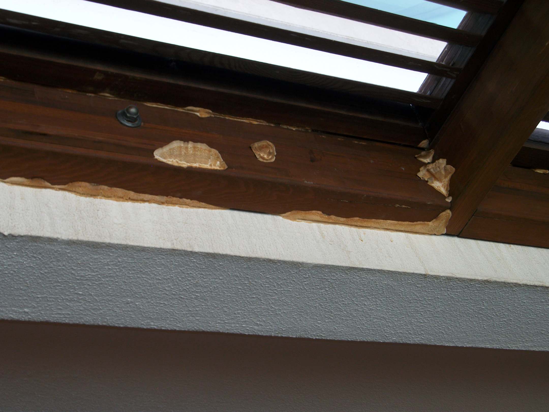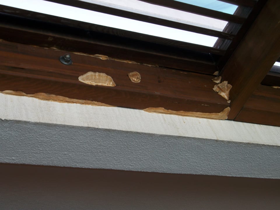 Holzpilz an der Holzkonstruktion auf dem Balkon