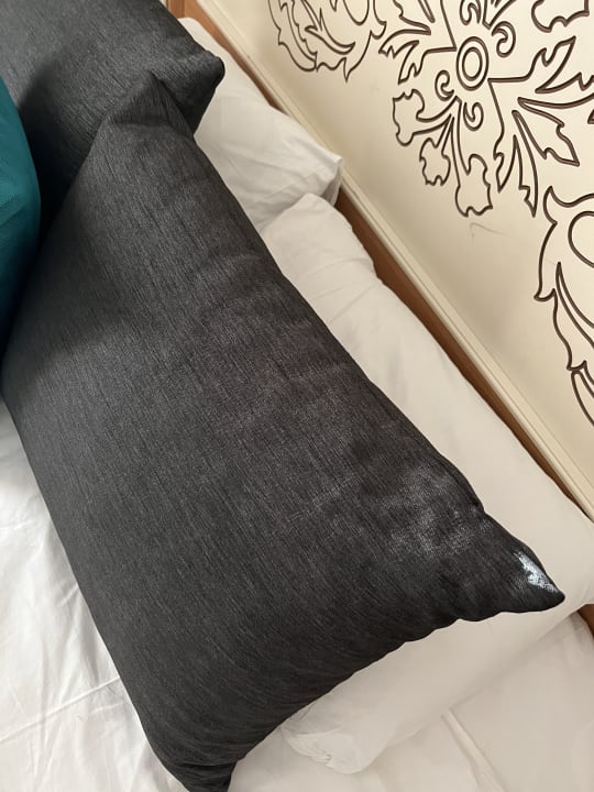 ZimmerWie man hier sehen kann, sieht man das Kissen mit weißer Farbe… Für uns war das Hotel nicht mal einen Stern wert