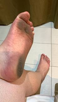 Raus aus der Dusche, Füße schwarz…