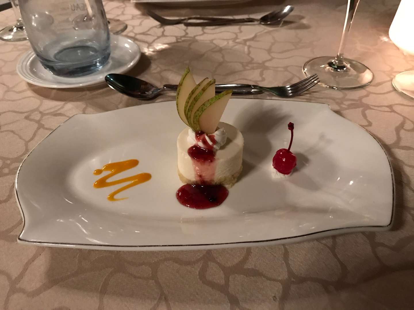 GastroNachspeise Mousse au chocolat blanc im französischen Restaurant.
