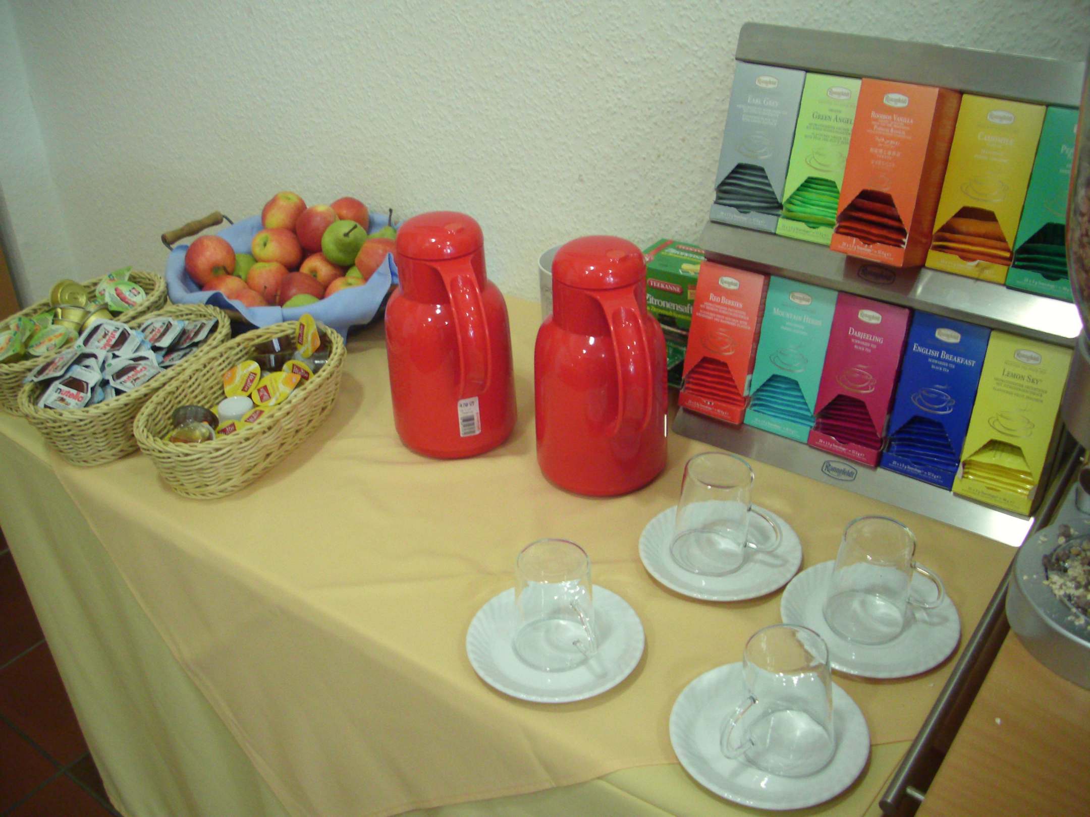 Frühstücksbüffet, Tee und Obst