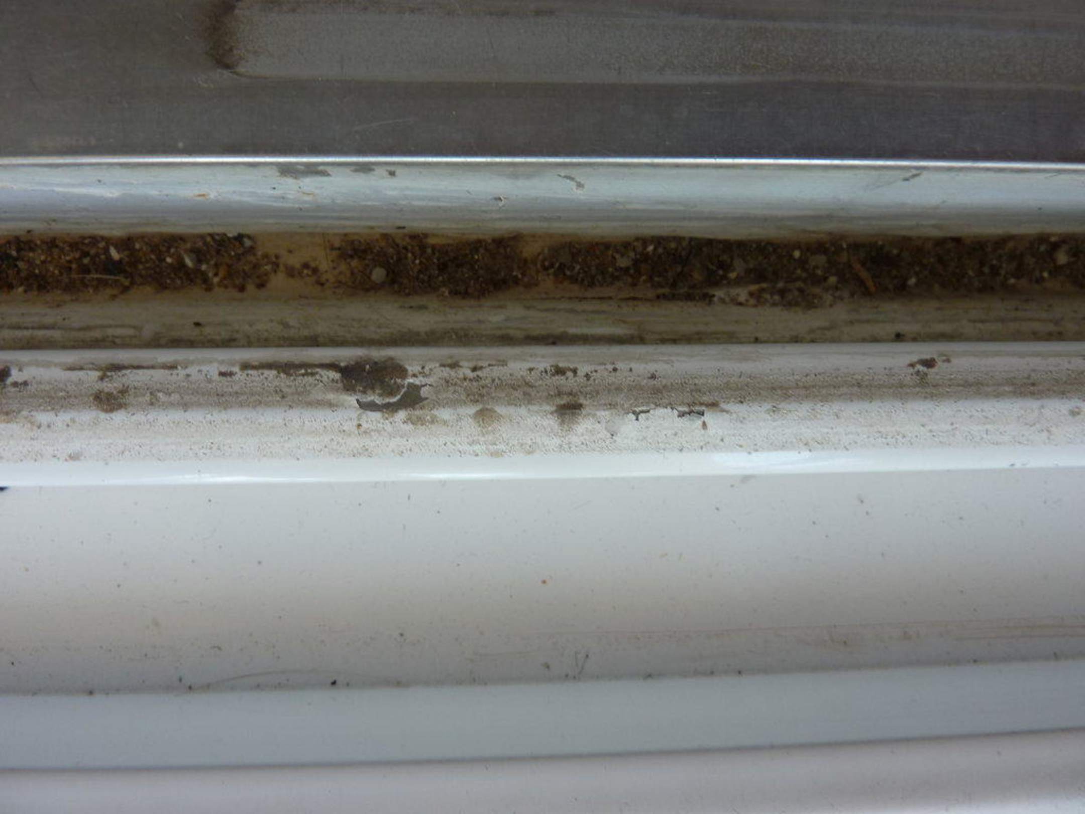 Leiste der Balkontüresehr viel Schmutz in der Leister der Balkonschiebetüre