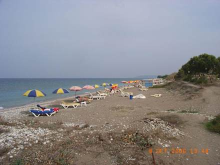 Das ist der Kiesel-/Sandstrand gleich hinterm Hotel