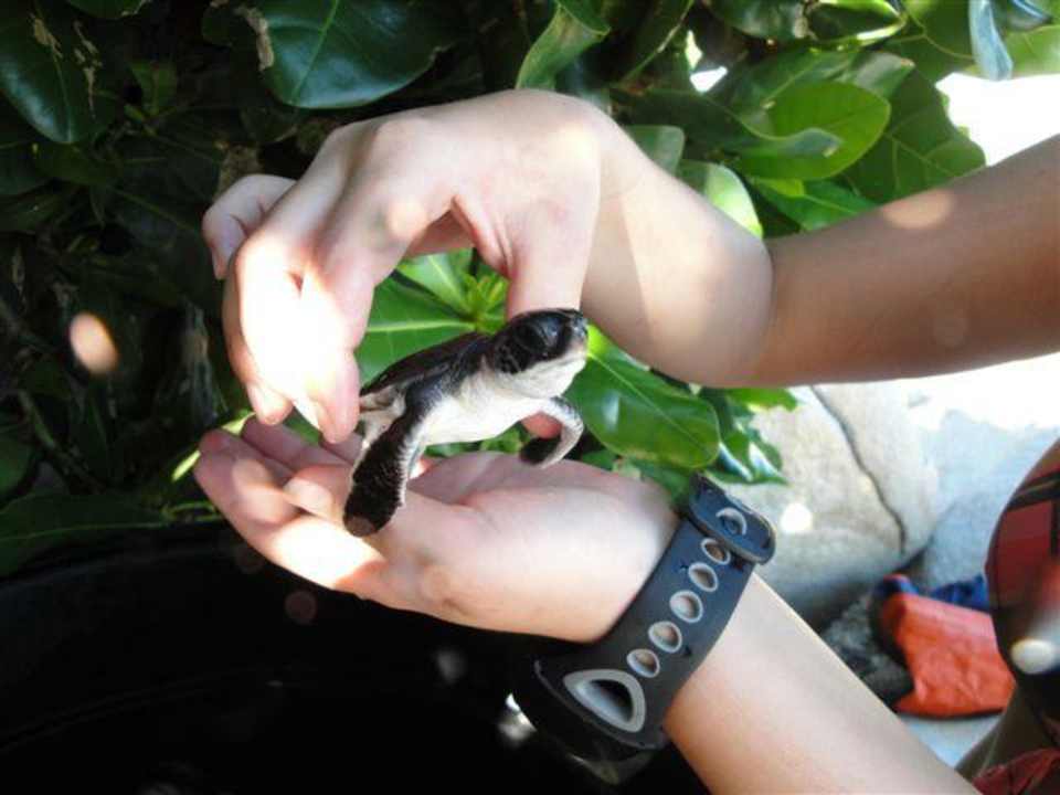 Babyschildkröte bei der Tauchbasis