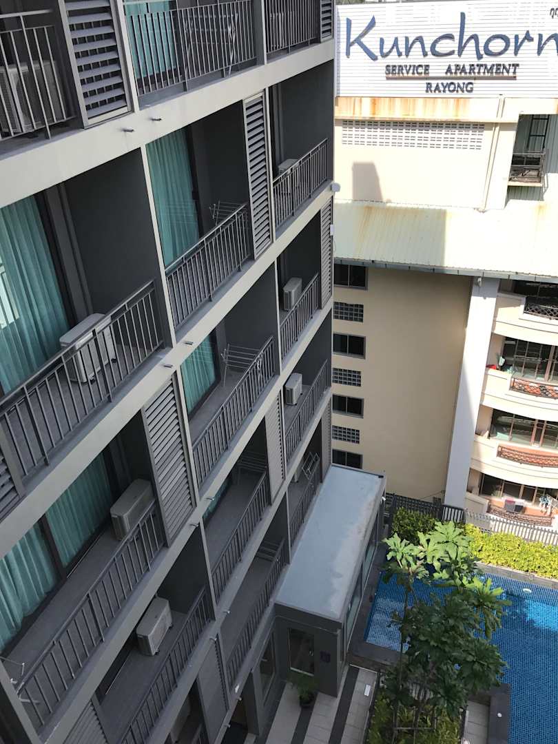 Aussicht von Balkon mit Poolblick