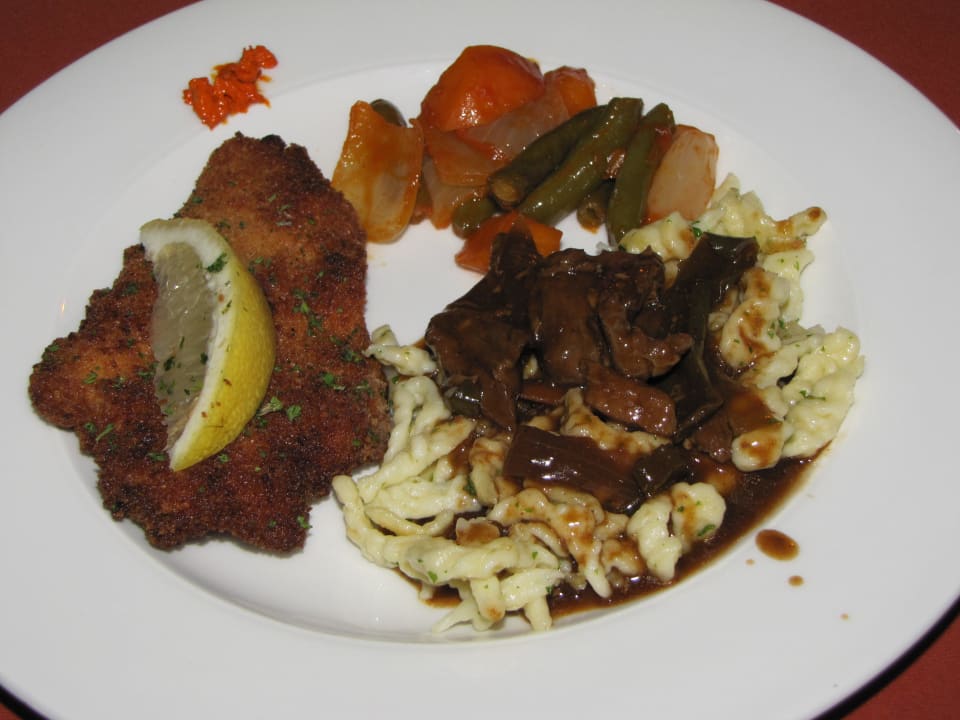 Abendessen: Schnitzel mit Beilage vom Büffet