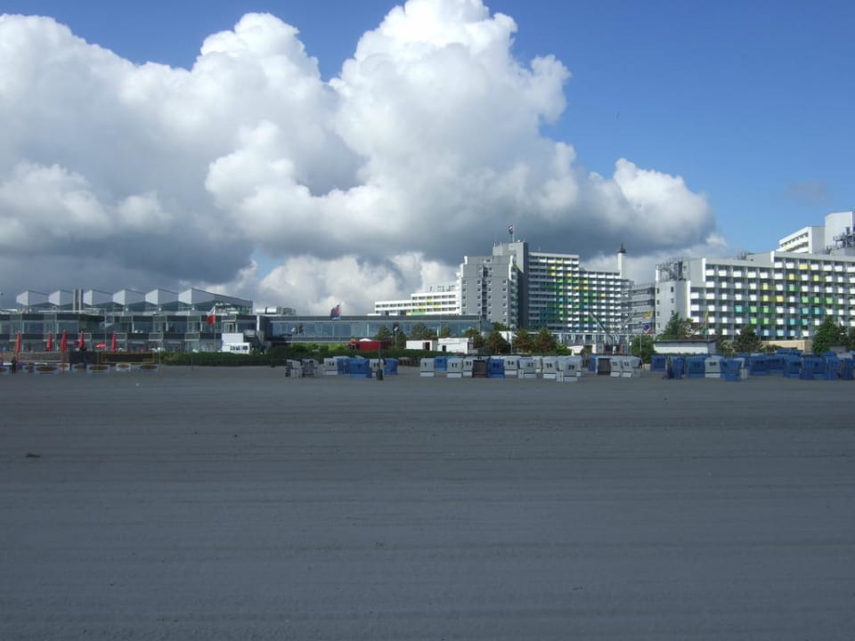 Blick vom Strand zum Hotel