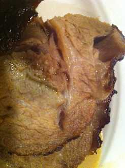 Der Schweinebraten vom Abendbuffet
