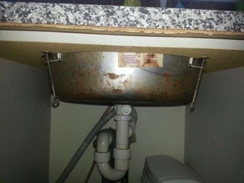 Verrostete schmutzige Spüle in Küche