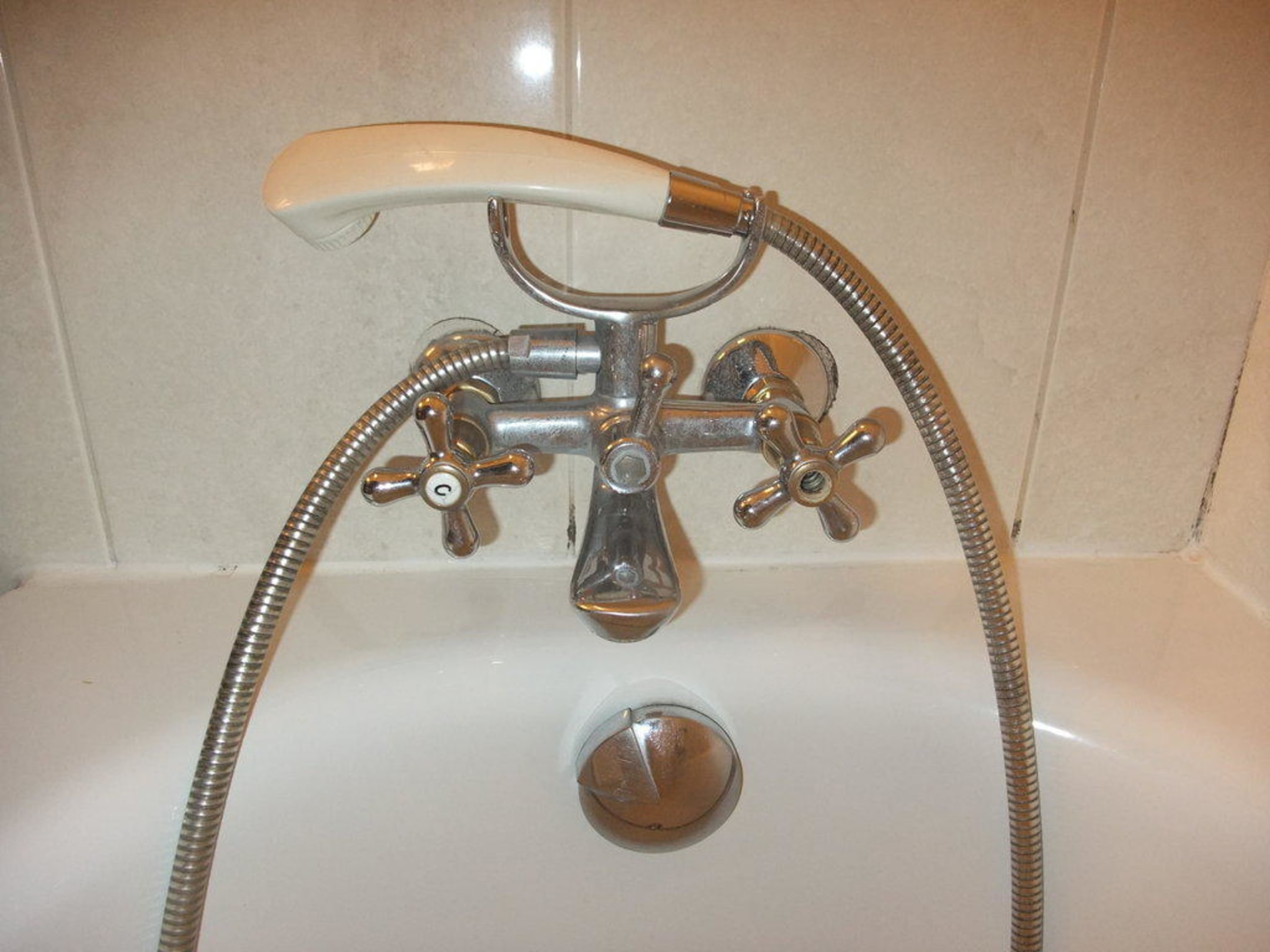 Schmuddelige Armatur in der Wanne