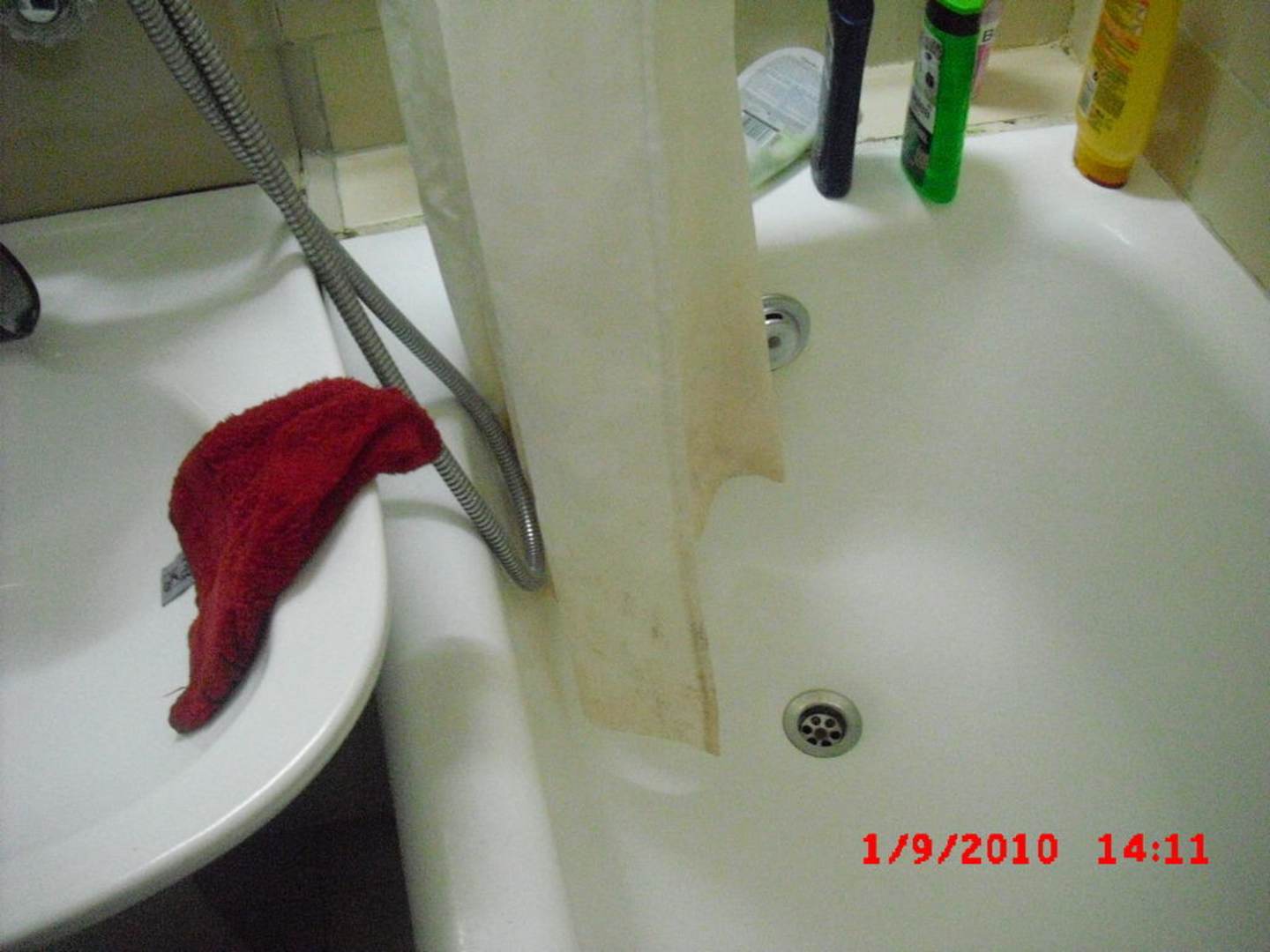 Badezimmer die 2.Auch der Duschvorhang. Der Schimmel? kein Problem, wer muss schon Duschen wenn er am Plattensee Urlaub macht.