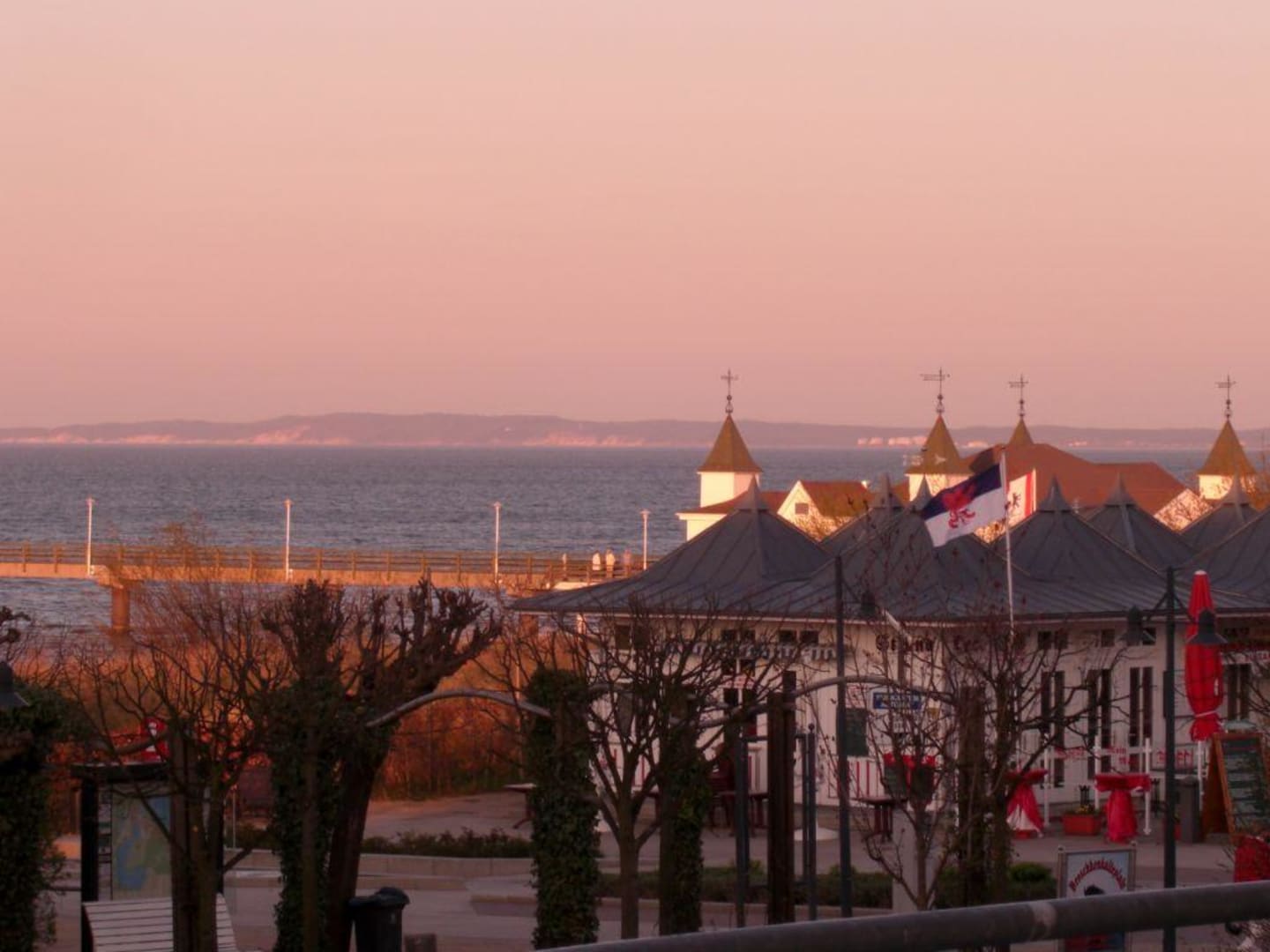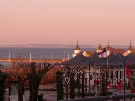 Zimmer mit Meerblickauf der Terrasse unseres Zimmers im Hotel: "Das Ahlbeck", im Hintergrund die Seebrücke von Ahlbeck