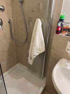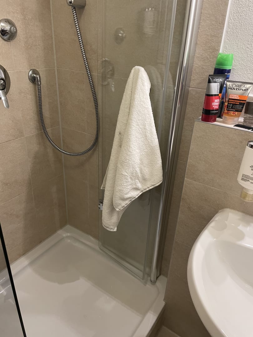 Sehr enger Eingang in die Dusche ((Platzangstgefahr nix für sehr übergewichtige)