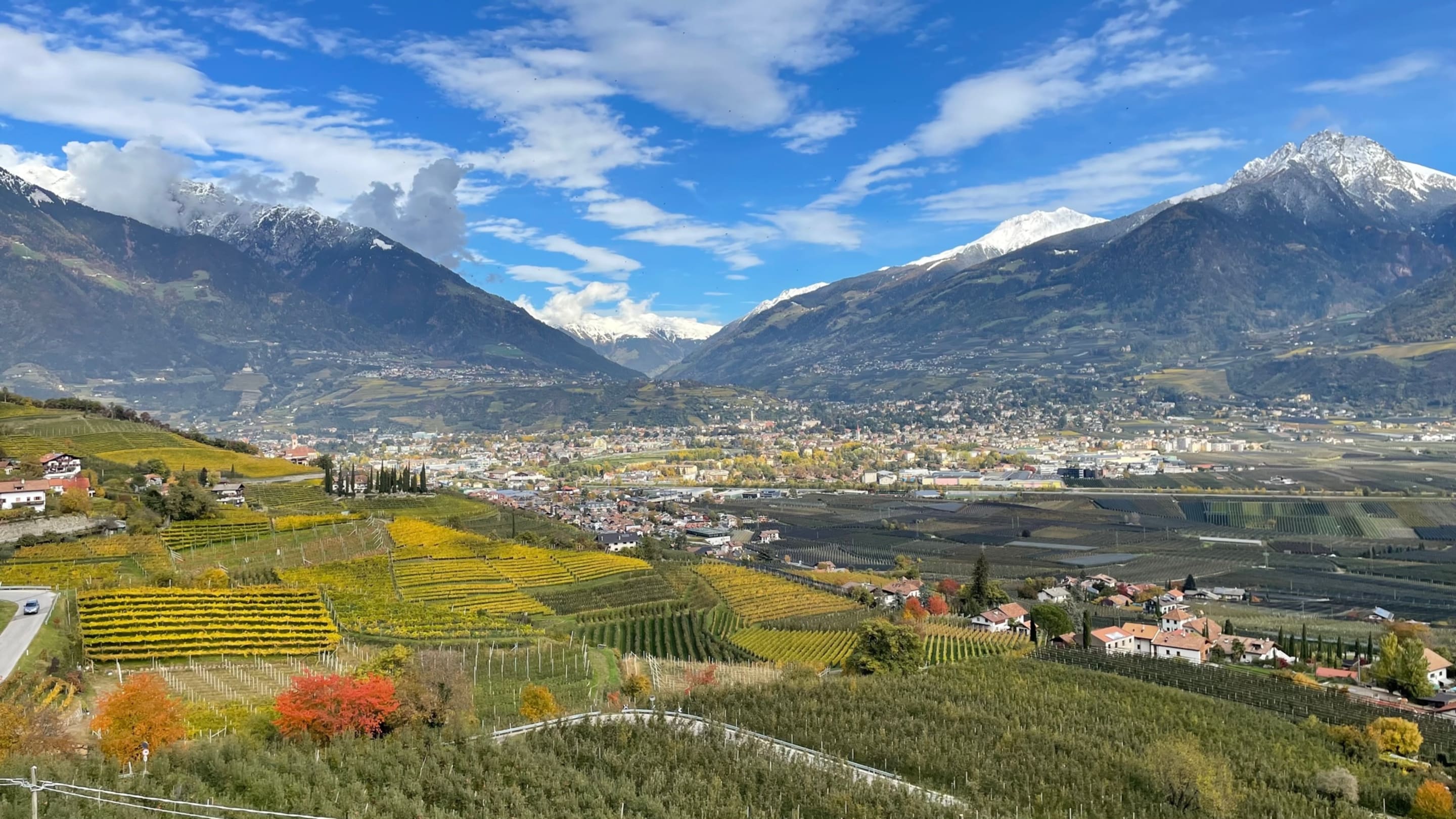 Ausblick auf Meran bei einer Wallweg-Wanderung direkt vom Hotel aus.