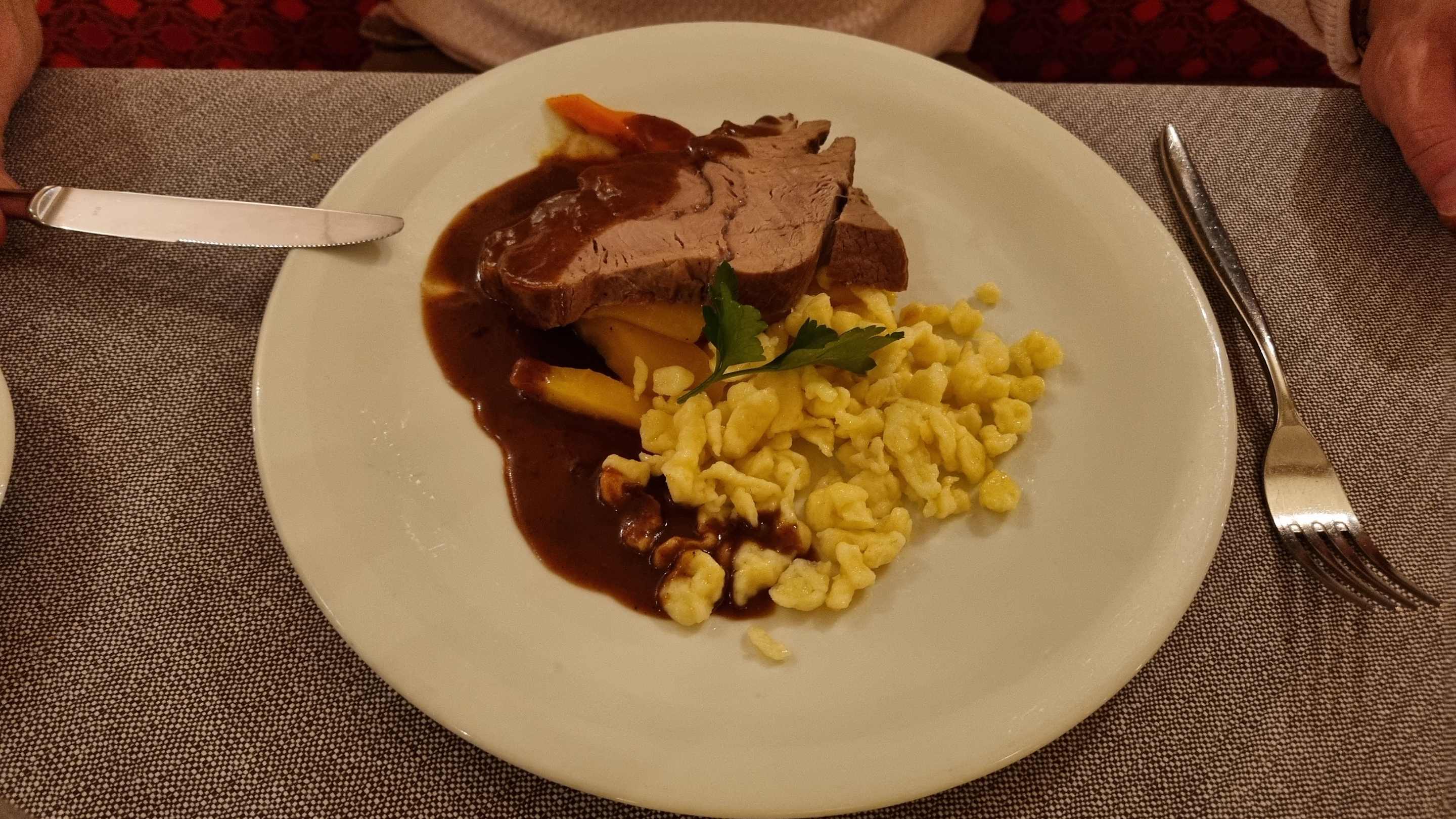 Hauptspeise, Kalb mit Spätzle